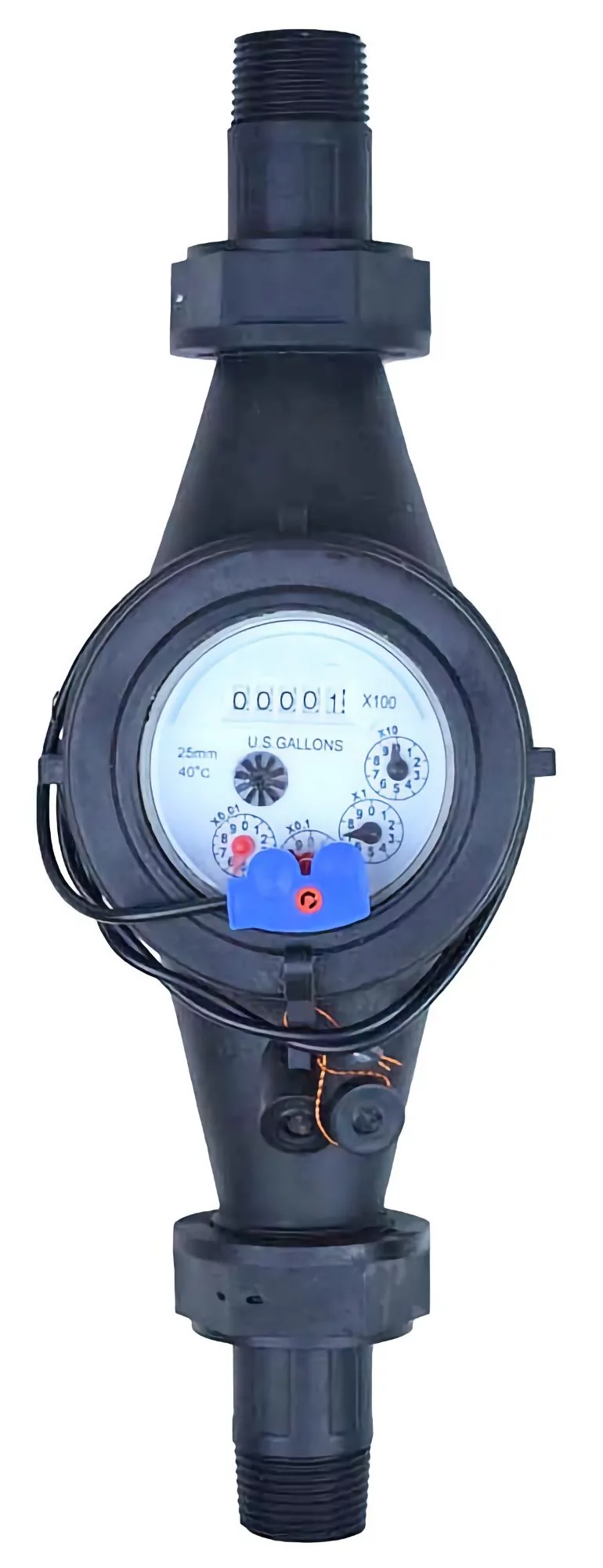 Accent's ACS-NM-075-R/10P Plastic Multi-jet Cold Water Meter Pulser has 0.75 in connections and a 10 P/G pulse rate output - reed switch sensor