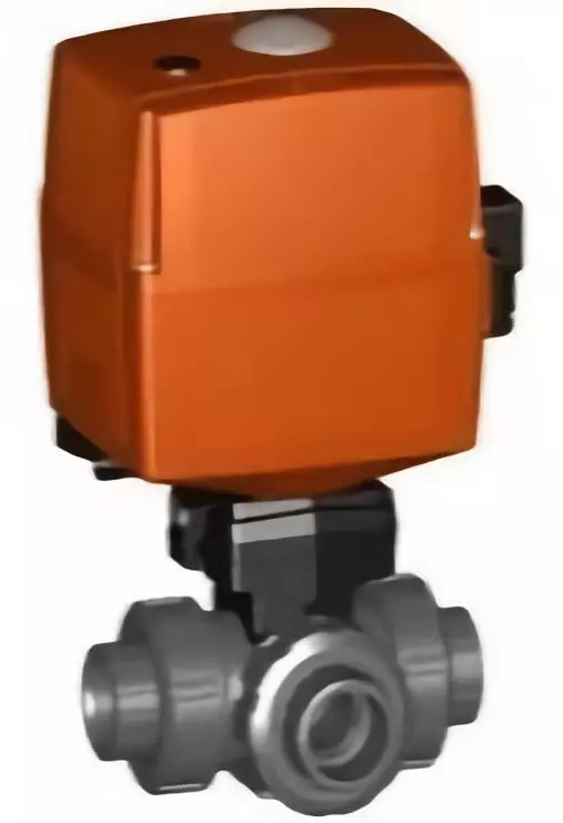 GF Valve's 150.125.424 Type 125 PVC Electrically Actuated Horizontal 3-way Ball Valves 3/4 in - T-Port with PVC/EPDM materials. GFPS Item: 150125424 (C)