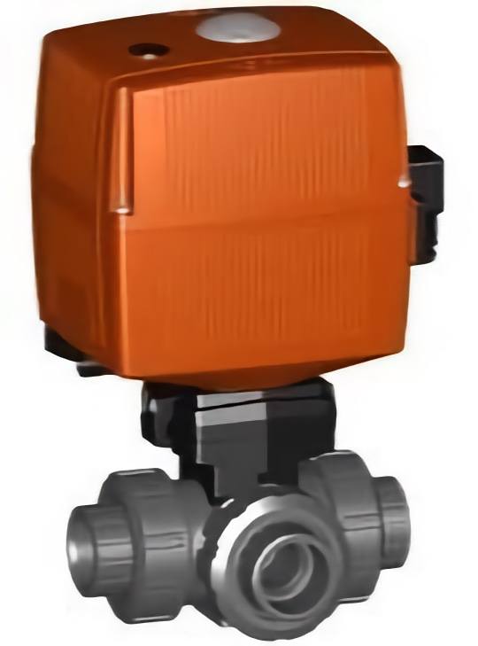 GF Valve's 199.167.396 Type 167 PVC Electrically Actuated Horizontal 3-way Ball Valves 1-1/4 in - L-Port with PVC/FKM materials. GFPS Item: 199167396 (C)