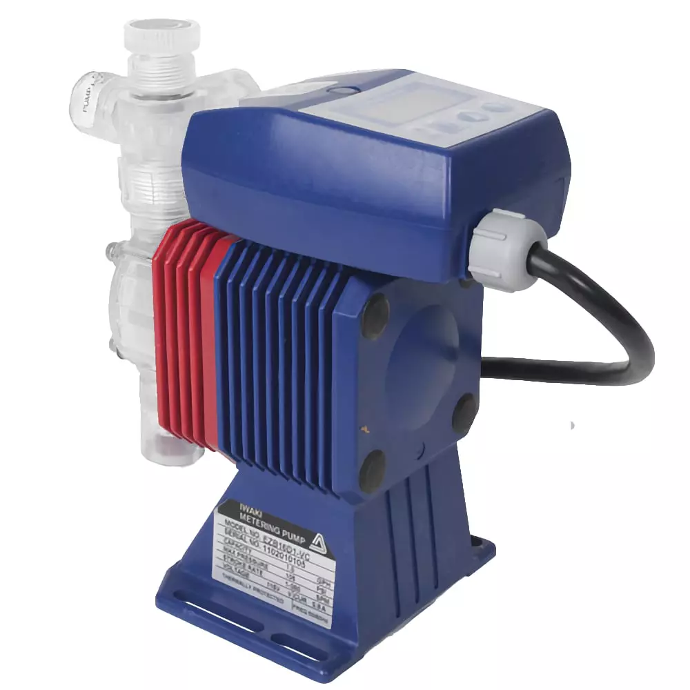 EZ Series electronic metering pumps offer precise chemical injection at a low cost. The compact size and simple control make them ideal for water treatment and OEM applications. EZ Series have outputs to 6.3 GPH (24 l/h) and a maximum pressure of 150 PSI (10 bar). Advanced microprocessor control and a turndown ratio of 360:1 make this series an exceptional value. The pumps are simple to operate with only three pushbutton keys and the unmatched turndown ratio provides both versatility and high resolution chemical feed which eliminates slug-feeding effects.