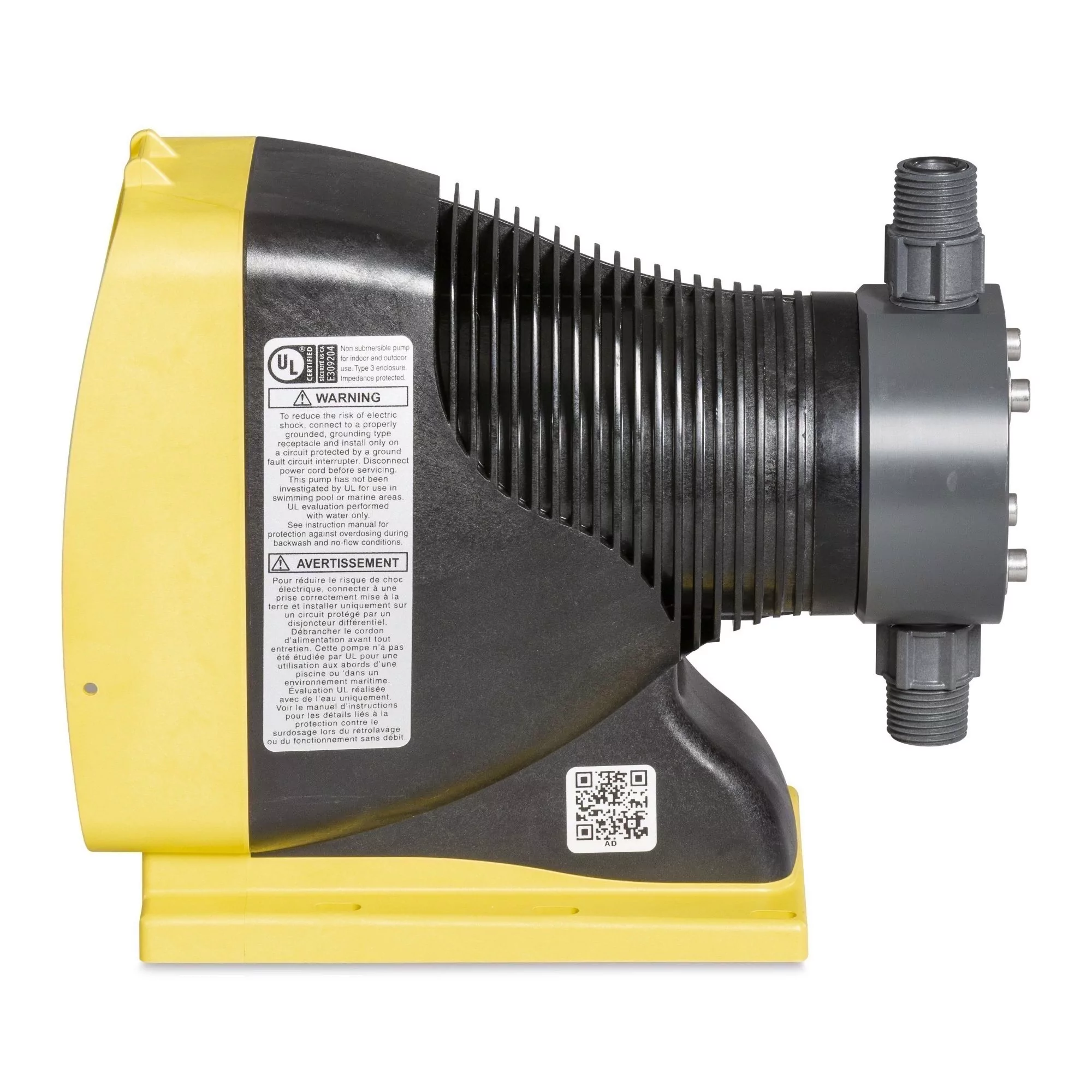 Designed specifically for commercial and industrial applications, the Excel AD chemical metering pump gives you improved electro-magnetics to meet your specific flow and pressure requirements, up to 250 psi (17.2 Bar) with capacities between .002 and 2.0 GPH (.8 to 7.6 l/h). The EXCEL AD pump provides industry solutions for more versatile chemical injection with up to 1000:1 turn-down capacity to take control of your application.