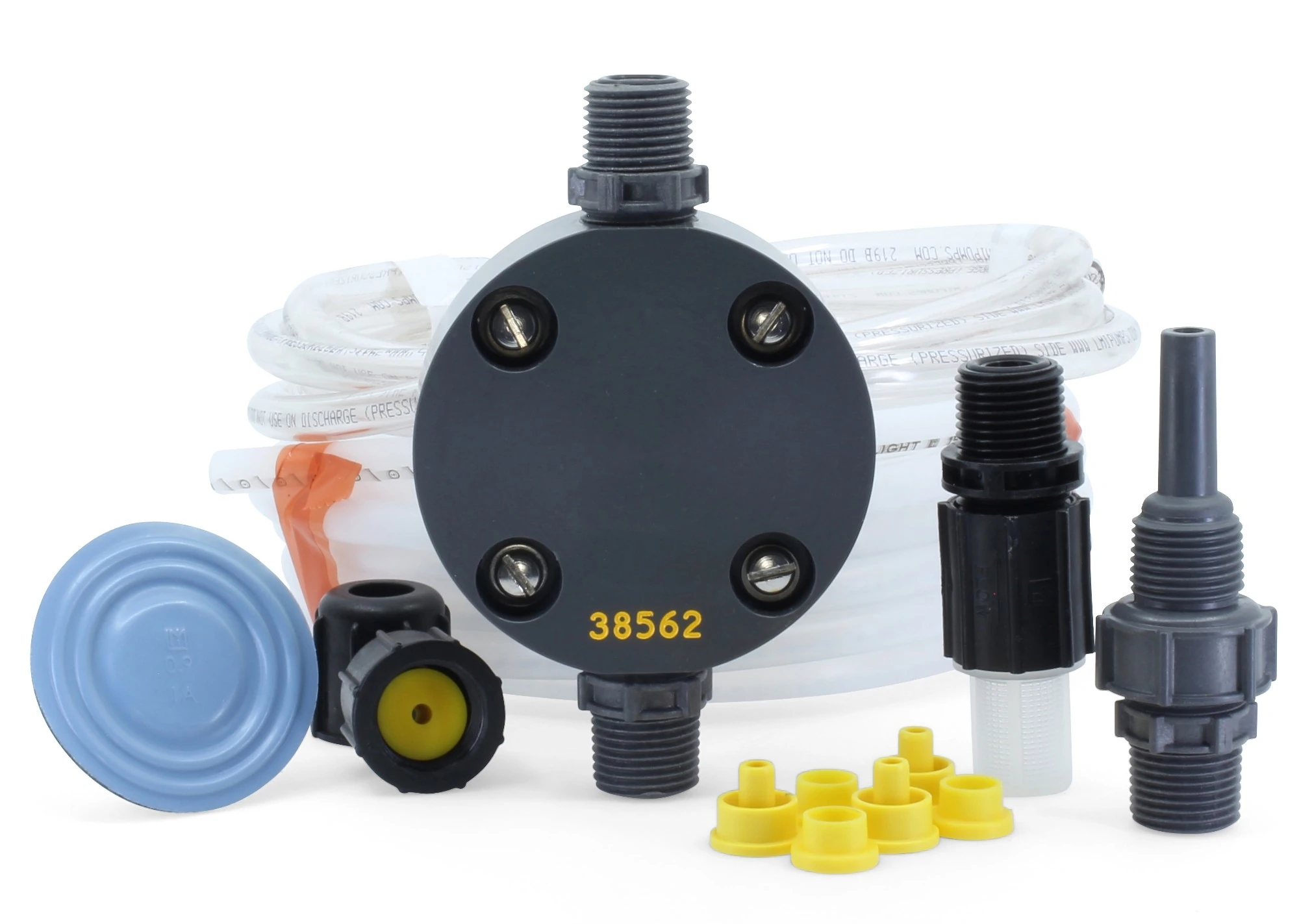 LMI's LE-465SI Liquid End Assembly - with Included Multi-Function Valve contains a Polypropylene pump head, Polypropylene fittings, PTFE (Teflon) seals, and Ceramic check valve balls. Contains pump head, diaphragm, and hardware needed to attach to an LMI Pump Drive End. Includes related foot valve, head assembly with suction and discharge fittings, injection valve, tubing and tubing connection kits // LMI Pump Reference: Machined LiquiPro compatible with Pump Series P, B, C, E