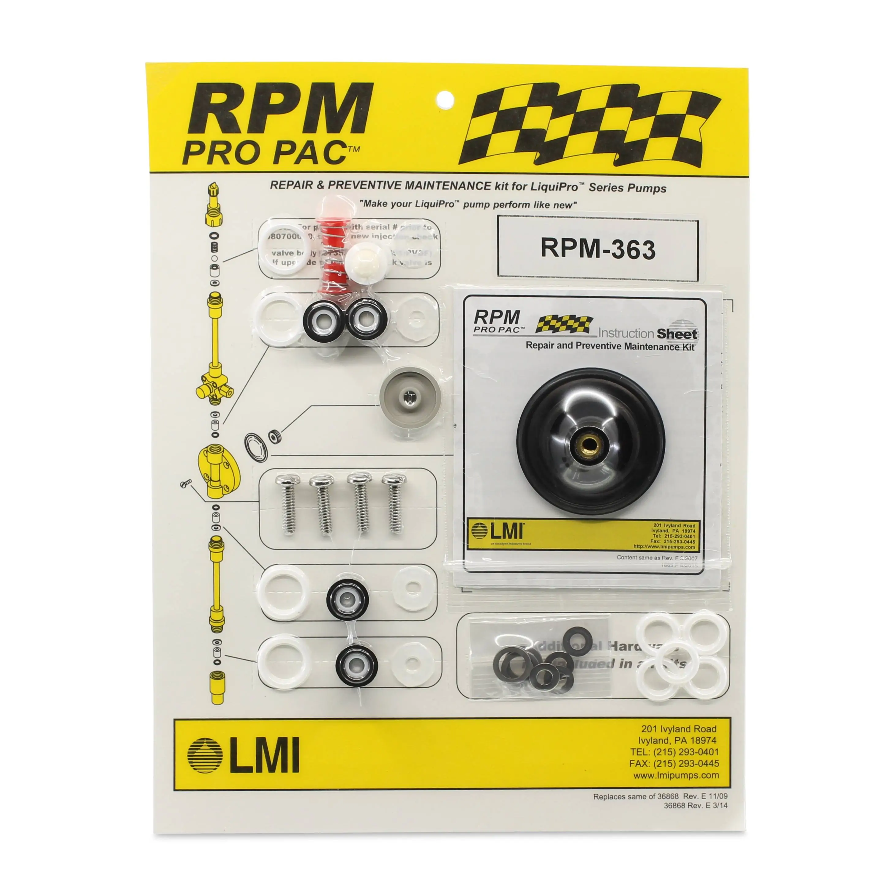 Available for all LMI Metering Pumps RPM Pro Pac Kits include all the parts you need for regular maintenance.
