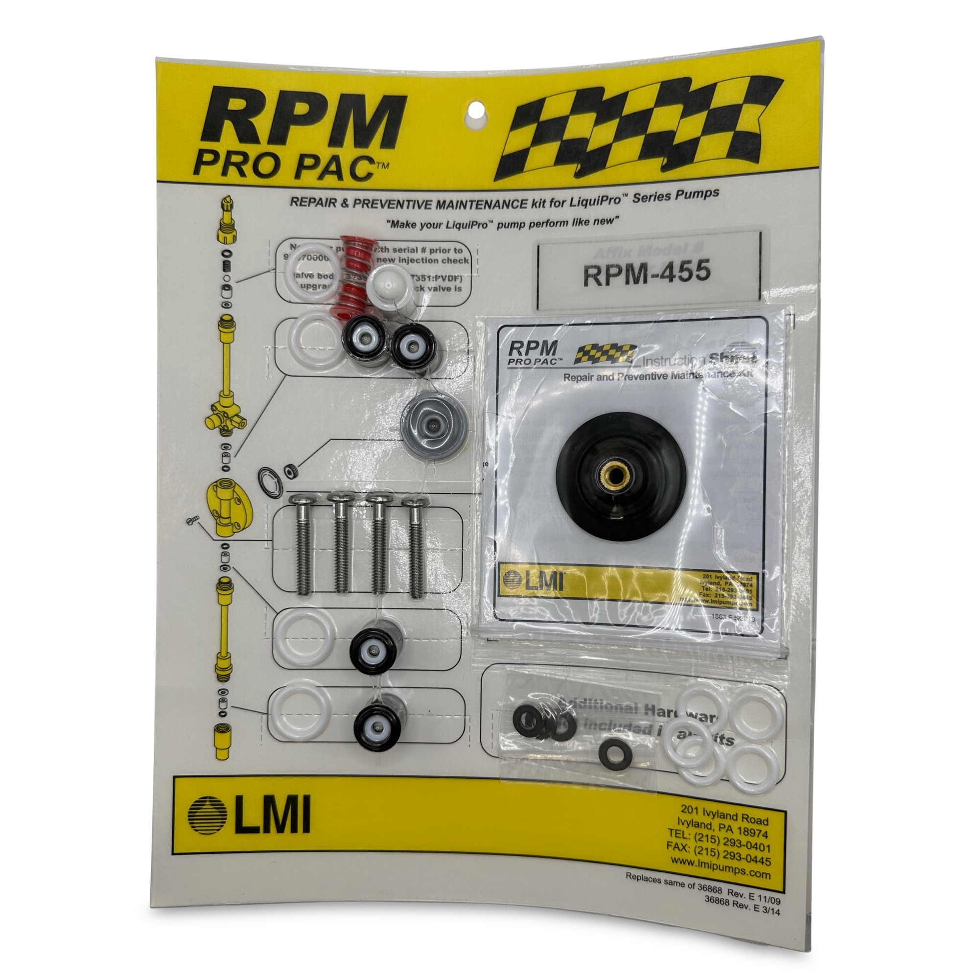 Available for all LMI Metering Pumps RPM Pro Pac Kits include all the parts you need for regular maintenance.