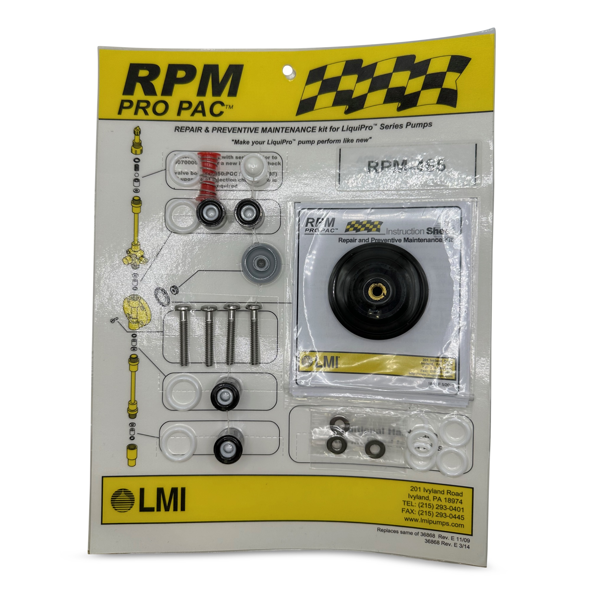 Available for all LMI Metering Pumps RPM Pro Pac Kits include all the parts you need for regular maintenance.