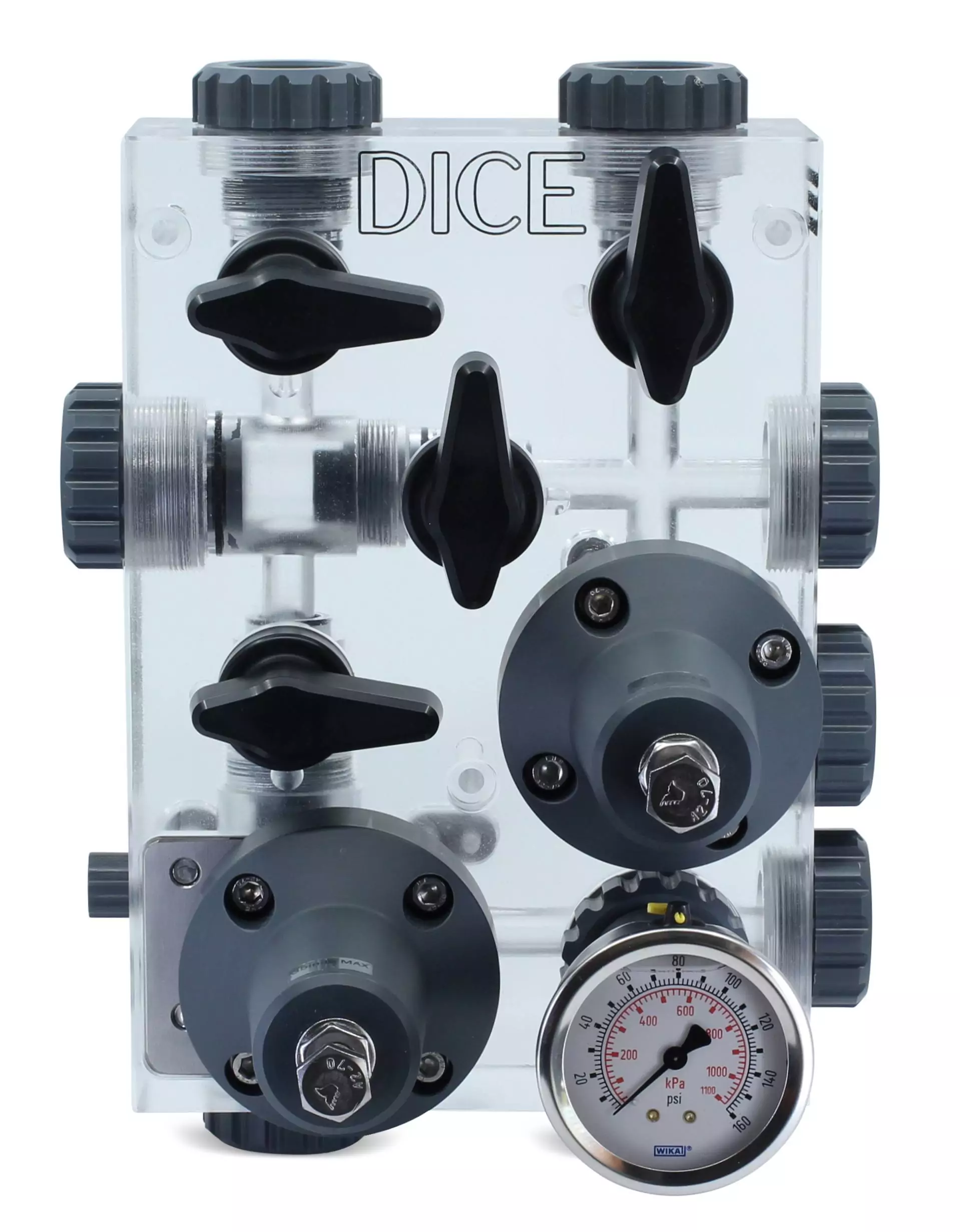 Meunier Technologies DICE DM DIM21-DDII-3333444Z4 for flooded suction applications is configured with 1/2 in ports up to 150 PSI with material selections of PVDF - PVDF - VITON for the block, wetted parts, and seals with connections for 1/2" Solvent Weld