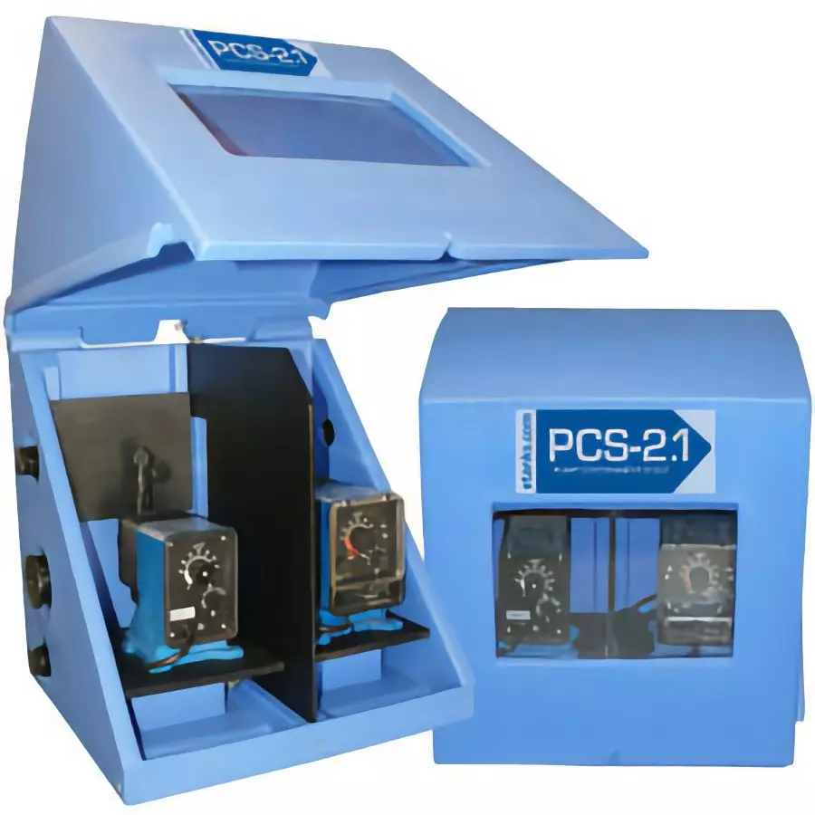 - Raised pump platform isolates equipment from leaked chemicals