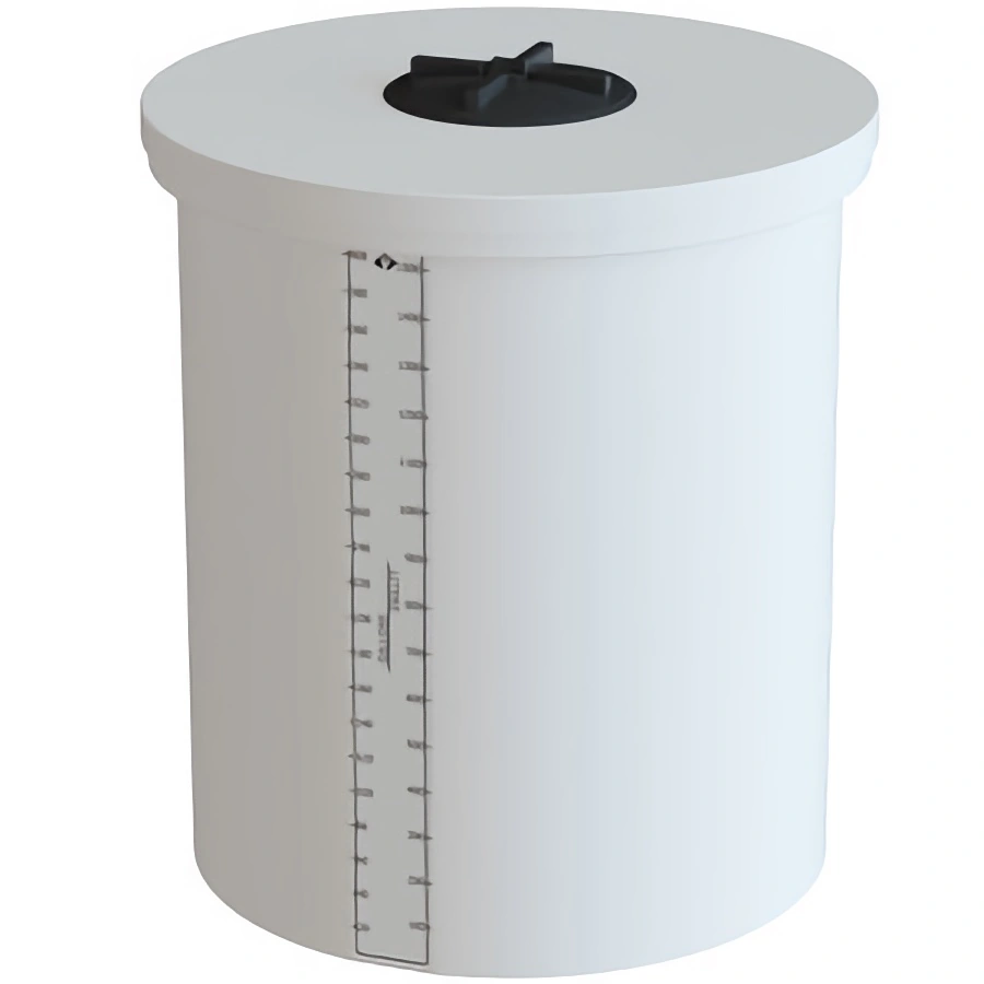 The Cylindrical Solid Cover Process Chemical Tanks are equipped with a threaded twist lid for applications where a removable cover is not desired. Flat side of wall with molded in calibration charts for quick level indication available on tanks that come standard with lid. Black lettering is available on these tanks at an additional charge.